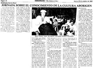 ♦ 19/10/2005 – Clase abierta “Cultura Comechingón” a cargp del descendiente de comechingones Don Mario Frontera Tulián